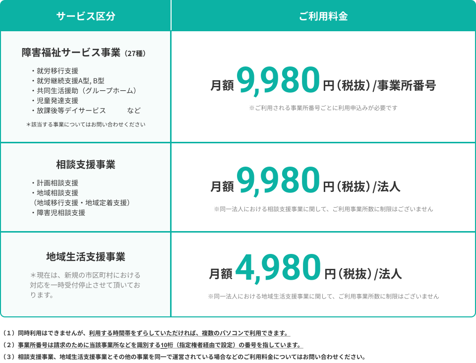 支援費制度(2003年4月~2006年3月)時代から、障害福祉事業所の請求業務をサポートしてまいりました。これからも、報酬改定への対応のみならず、更なるサービス改善に尽力してまいります。